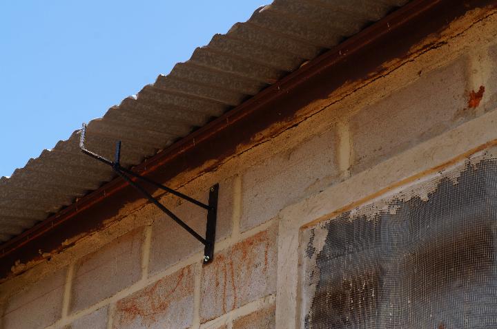 Work on the gutters has been moving right along since the rain stopped on Monday morning. The tin on all the roofs had to be trimmed back and then brackets mounted. There are four guys working on this, and a fifth one that I think has appointed himself supervisor when he feels like it, around lunch time. I’m pretty sure he is going to be a little disappointed come time for payment of work done!