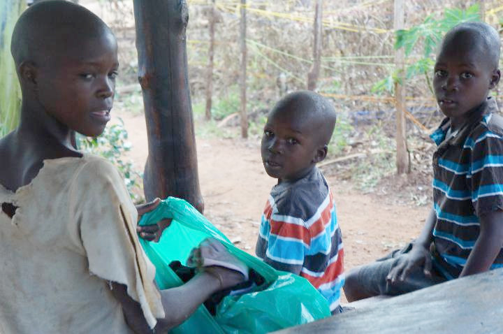 Just wanted to update on the children that were brought to me. I got to go to Jinja today and was able to buy them a few clothes, it was very hard not knowing their sizes, only from seeing them once! And shopping here is nothing like home, even going to Goodwill. We went to the largest market in Uganda, and it is rough being a mazungu, everybody is shoving things at us, but I had our driver and friend with me to help. He was a great help to me and he said I did very well in bargaining – I stuck to my guns and paid a little higher than a Ugandan would, but didn’t get totally ripped off! I bought each two outfits praying they would fit. Also soap for bathing, washing powder for their clothes, and the powder to kill jiggers and eggs in and around their home. We are working on getting the jiggers removed from the little ones, and I measured their feet so that I can get them shoes. When they came over, the two youngest cried, and were scared, but our worker helped them get their new clothes on – they all fit! Thank you Lord! The girl tried her dresses on, but then took them off. I’m not sure why, but I don’t think she wanted to get them dirty. Then they went and got their heads shaved, as everyone here in the village pretty much does to prevent lice, and came back looking like new kids. I know it doesn’t fix their circumstances altogether, but when they left there was no more crying, and even smiles on all their faces. I know the cookies didn’t hurt! We will keep checking up on them, and do what we can, but we know there are a lot more people in need, and in even more need than these so we pray God shows us how we can help, who we can help and when we can help.