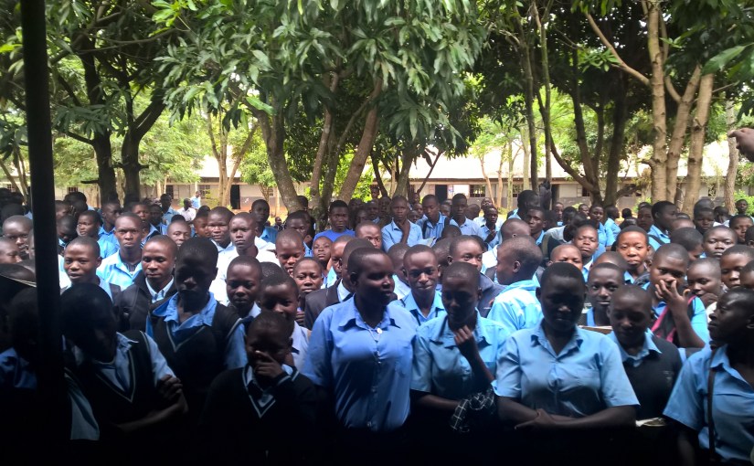 This past Tuesday we were invited to Derick’s high school to speak to a Bible study group on campus. We were told that in the past year or so the group has been dwindling down until it’s only been about thirty-five students coming each week. By Derick’s word of mouth and his enthusiasm and love for us, he told us he had three hundred students sign up to be there! We weren’t sure if we understood that correctly, but it really didn’t matter if there were thirty or three hundred. Of course everybody needed us just before we were to leave, trying to get away, and taking Bakali (who is Derick’s ‘brother?’) with us to show the way, we understood the school to be about fifteen-twenty minutes down the highway going to Jinja and we had thirty minutes to get there. Let me stop here.
