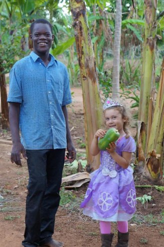 Sharifu (our day-guard) came to us last week with Kimuli. “This one has a problem” he said. We asked what the problem was. Well. Kimuli is now twenty and has decided he wants a wife – actually what was said was “He wants to buy a wife”. He is one of our best workers despite what the previous couple told us. They told us he was useless and their kids weren’t allowed around him. He barely spoke any English, really only about two words until Raelee came along and decided he was her best friend. He was our day guard, but he worked harder than any of the others on the grounds so we promoted him. Having Raelee around, he has learned more and more English and keeps a close eye on her and Smokey every day. He and Sharifu are like sons to us and big brothers to Raelee.
